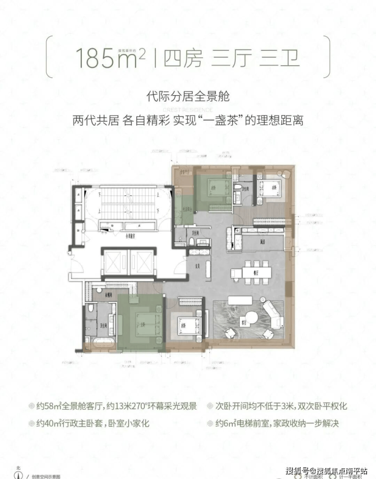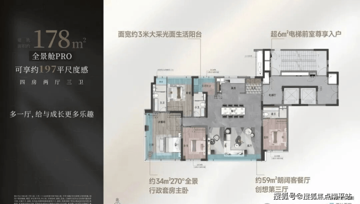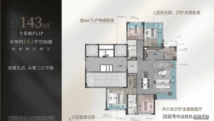 约4.5㎡独立玄关,约6㎡电梯前室,增加储物空间,提升归家仪式感