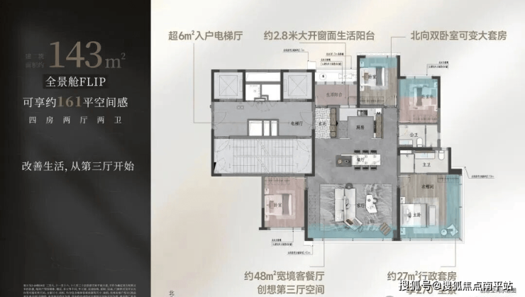 【建面约143㎡端厅户型图】建面约143㎡可享162㎡空间感