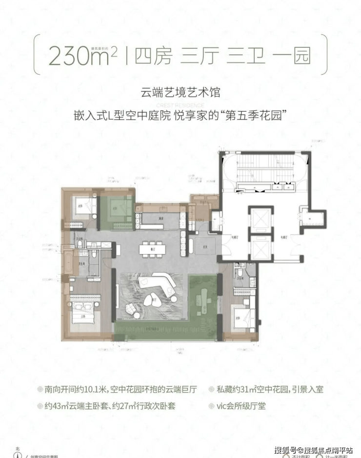 双套卧设计,约23㎡次卧套房,L型全明采光面
