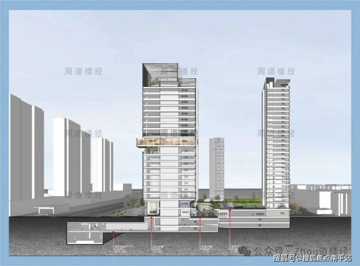 构建自循环微缩城市体系,双地铁、高端酒店、住宅、商街、街心公园/文化广场等业态垂直复合,形成“楼下全能生活圈”。