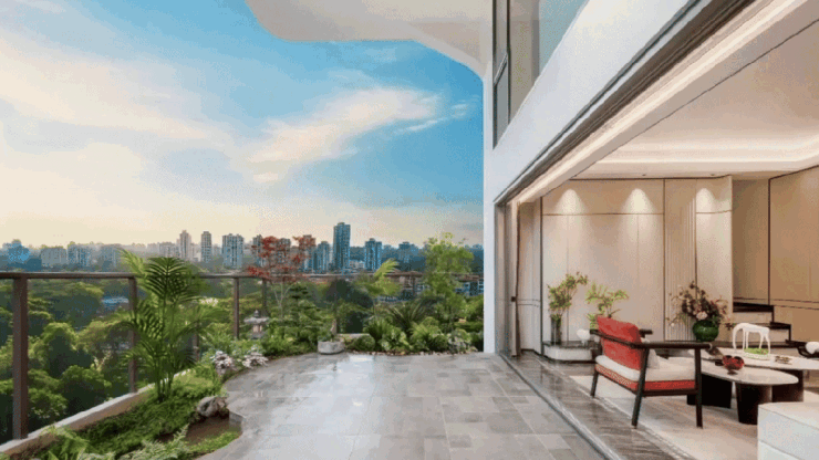 项目汲取Andaz度假酒店灵感,打造近3万㎡森活园林,九重云水空间筑就的“桃源奢隐之境”,搭配空中花园垂直绿化,自然隔热、减少热岛效应,营造绿色健康、生态宜居的生活环境。
