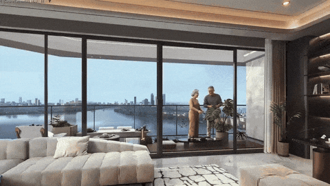 173㎡央景大平层位于整个社区的中央位置,打造了约270°空中露台,将中央园林景观以及远处的山、水、森、湖完整纳入视野。同时,该户型延续四代宅的尺度考量,更以类三套房设计,让亲疏关系在空间中找到恰到好处的分寸。