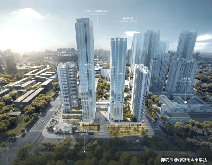 项目自带的商业体量约3.1万㎡,同时紧邻深圳首座中粮大悦城(规划约16万㎡商业MALL,已经开业),形成区域核心商圈。1公里范围内还聚集了中洲πmall(6万㎡)、宝安万达广场(19.8万㎡)、海雅缤纷城(36万㎡)及壹方城(36万㎡)等大型商业综合体,覆盖零售、餐饮、娱乐等多业态需求。此外,项目周边社区底商丰富,步行范围内可满足日常生活采买需求。