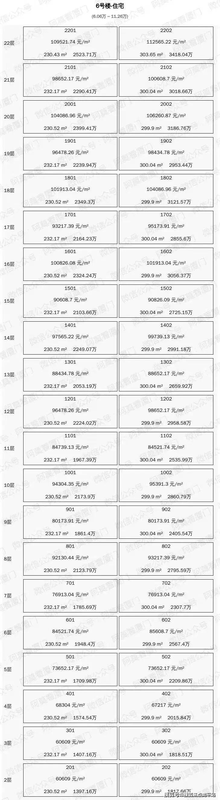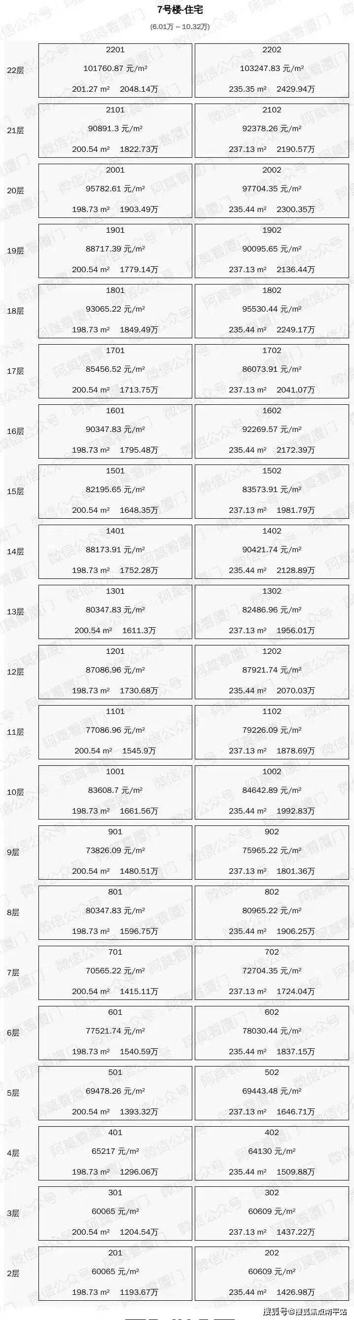 一房一价表(阿莫看厦门制图)
