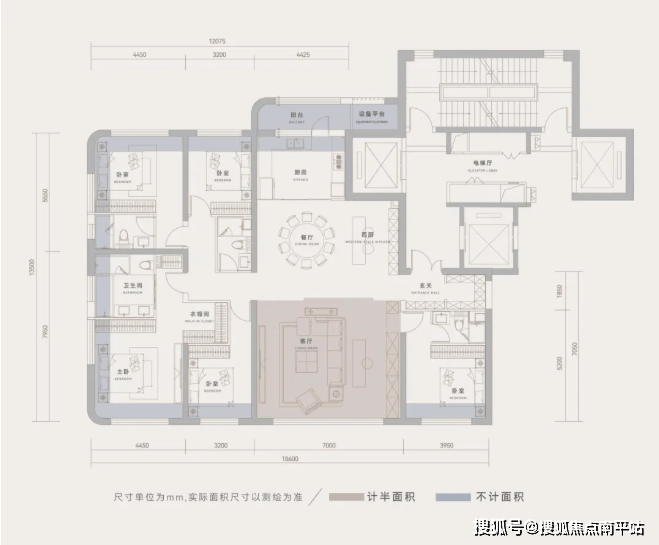 玺境|建面约139㎡户型,配备约8.5㎡专属前厅私梯入户,约112%超高使用率,含独立电梯厅在内,套内实用面积可达约156㎡.