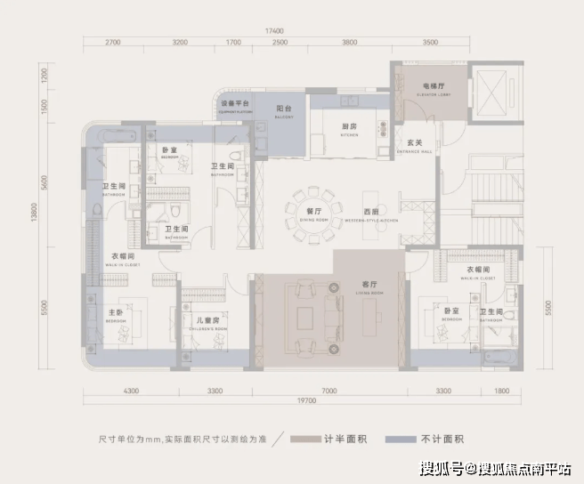4+1三套房设计,其中3套卧满足三代同堂家庭;约3.3米层高、约95㎡超大空间搭配约7米大横厅,空间尺度感拉满!