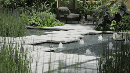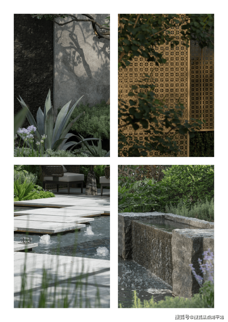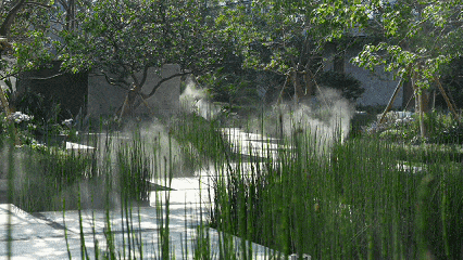 叠瀑流水声与自然白噪音的心理疗愈,充满自然况味的山石草木触感,从室外漫入室内的自然景物,室外花香与室内香氛的和谐统一,精心设计五感联动,建立五感丰富的记忆烙印。