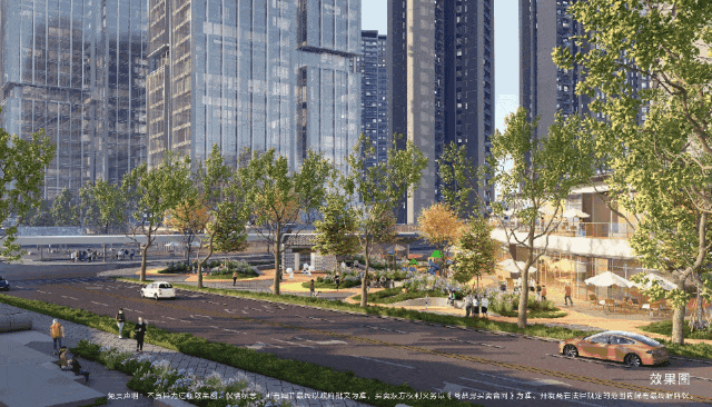 例如, 项目通过建筑退缩释放更多公共空间、N个口袋公园, 更规划在社区中通过公园绿轴,打造慢行街区,作为全时段城市客厅。实现公园与人、人与社区的“点线面”全覆盖,真正让公园融入生活之中。
