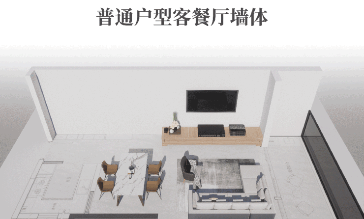 “去客厅化”设计摒弃了传统的电视+沙发布局,而是将公区作为更开放的起居、社交空间,可以根据需求,随时调整使用场景。