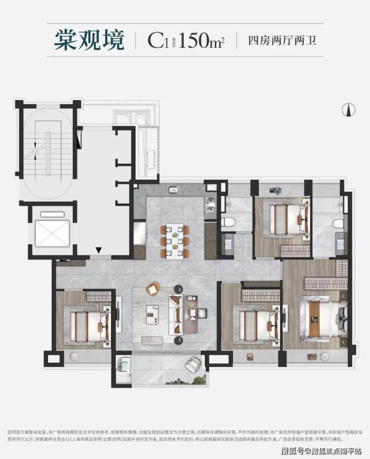 【约150㎡ 四房两厅两卫】