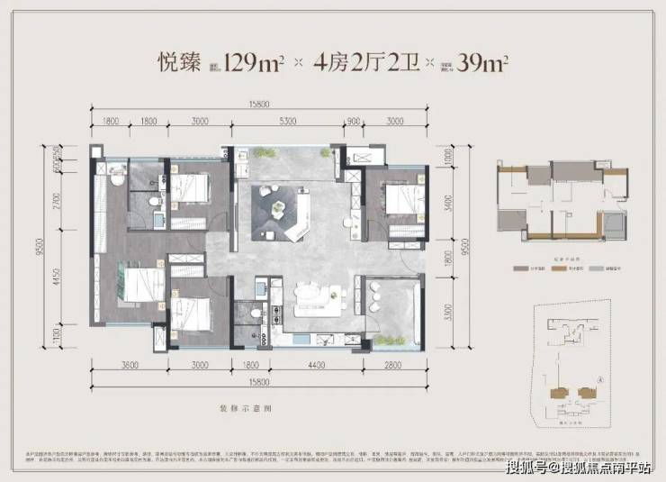 建面约129㎡户型示意