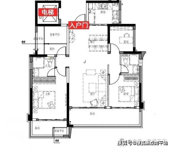 A1栋为两梯三户布局,建面约125㎡大门外单独安放了一台电梯,电梯门就在入户门的左侧。