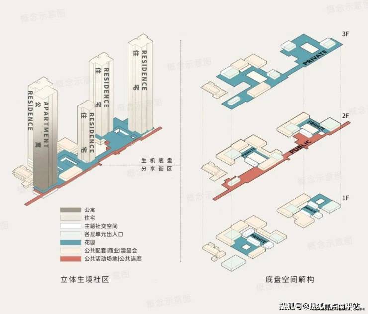 所谓的“超级底盘”,并不是一个简单的建筑底座概念,而是一套复合的、立体的、生态的居住系统。项目创新打造了“地下三层 + 地上三层”的立体社区底盘,将商业、配套、景观资源垂直叠加,在有限的土地上创造了多维的生活场景。