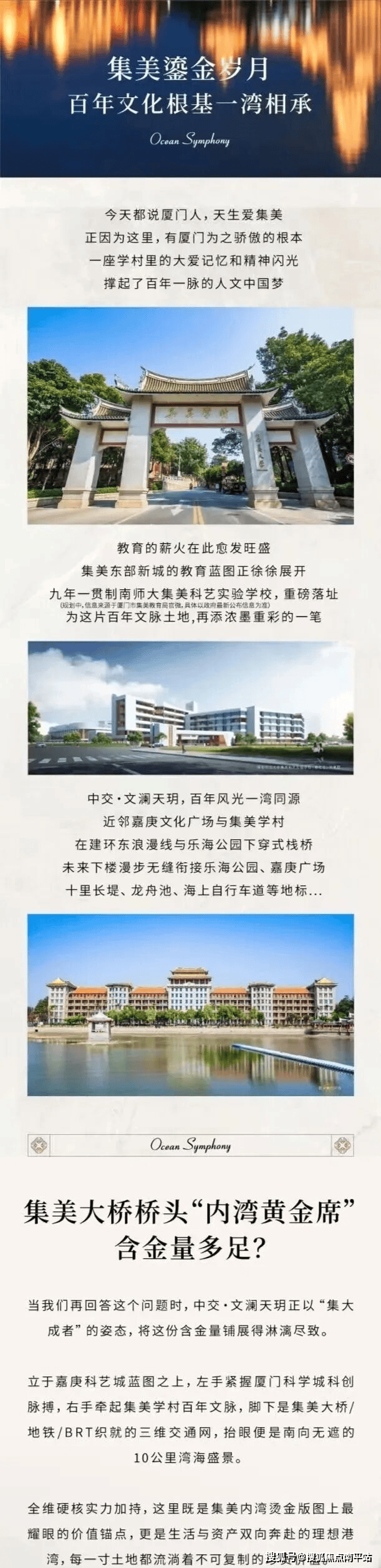 中交·文澜天玥位于集美东部新城,官方对其定位是——高于岛内标准启动东部新城片区规划建设,将其打造宜业、宜游、宜居的活力之都,科技、人文、生态要素集聚的“嘉庚科艺城”。