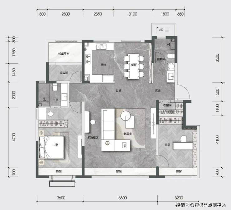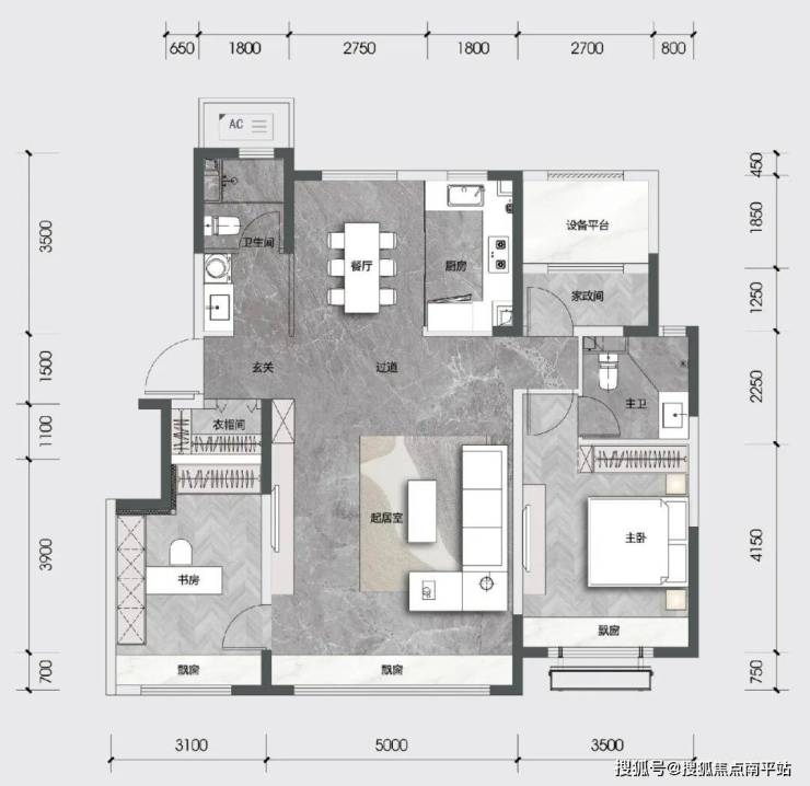 不同于市面上很多户型的大面宽短进深,看上去很炫酷,其实并不实用。