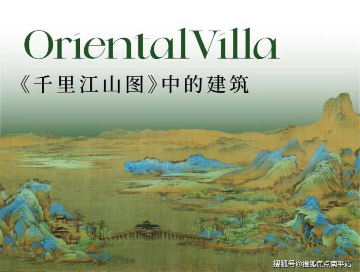 《千里江山图》中,建筑强调半通透空间运用,建筑构图讲求留白与虚实相生, 如宋画般疏密有致。