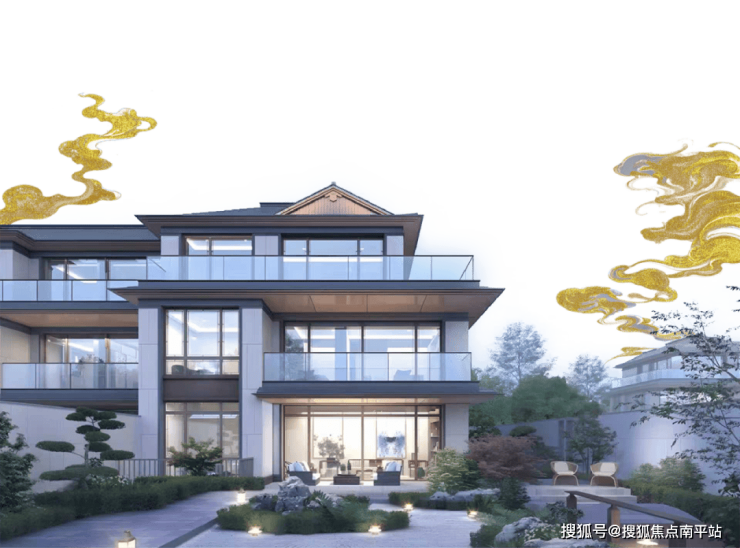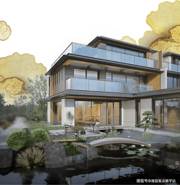 绿城庐系,更是开创了“现代形,东方意”的美学体系。 顺北绿城·大美和院,携带着绿城“庐系”基因落子顺德,从传世名画《千里江山图》中溯源、提取宋式建筑符号、规制, 师古而新,再造经典。