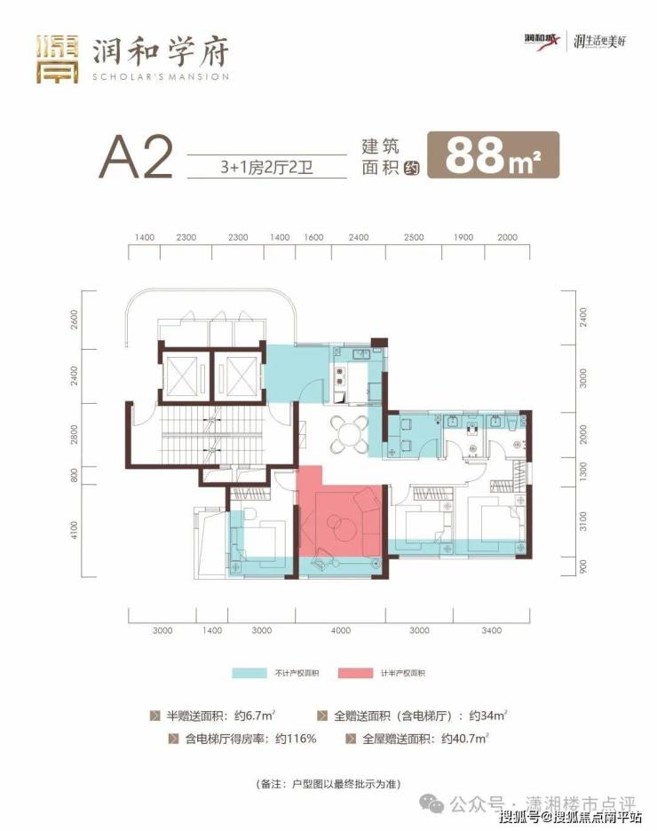 全屋得房率超116%,全屋赠送面积达40.7㎡,实得面积102㎡≈老规130㎡