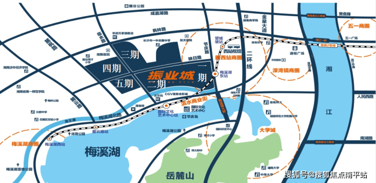项目紧挨梅溪湖超级中轴,毗邻地铁2号线西延二期(试运行)百合路站,西临雷锋湖中央公园,周边还有招商花园城、长沙市妇幼保健院河西院区等配套。