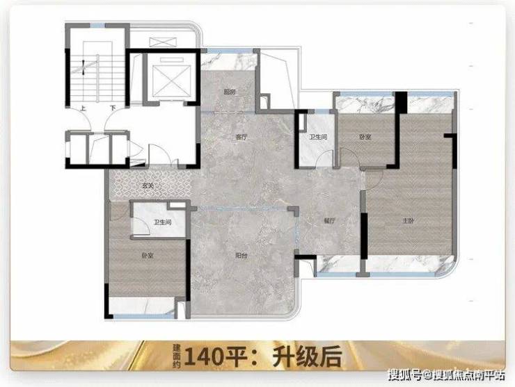 一进门的玄关地面,升级为宝珀灰+白慕斯石材拼花,仪式感拉满。