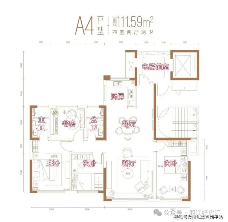 目前,润和天心序将推 约100-112-123-130㎡ 四款户型,全部 3米层高+两梯两户+纯板楼。