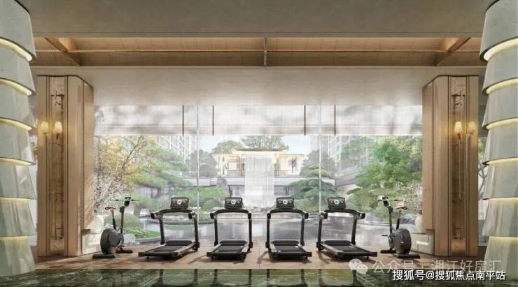 和恒温泳池一样,阳光健身房的配置同样是片区首个,透过大落地玻璃可以欣赏窗外下沉庭院/大瀑布,收获感官和生理上的双重享受。