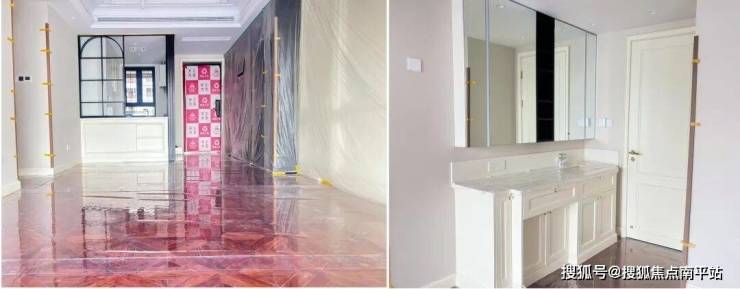 这份自信不仅体现在公开展示的魄力,更藏在对细节的极致呵护中。走进实体交付样板间,可见地面铺陈着保护膜,定制防护套将柜体边角悉心包裹,连厨卫五金件都覆着防刮薄膜;这些繁琐的每一道防护工序背后,是对未来交付品质的预演,更是对每个细节毫厘不差的自我苛求。