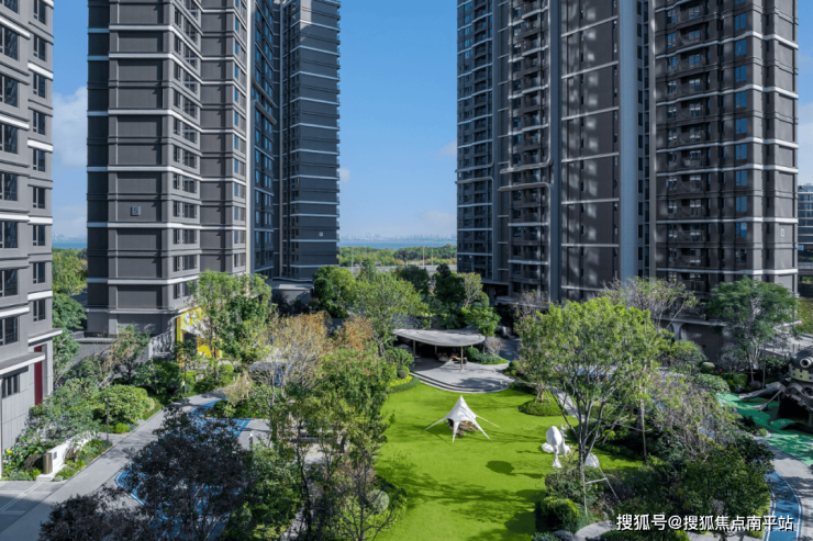 它的楼栋呈围合式布局,可以形成巨大的中庭园林,规模达到2.7万㎡。