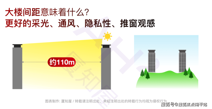 中庭横向跨度约190m,纵向跨度约110m。这换句话说就是:楼间距超大!