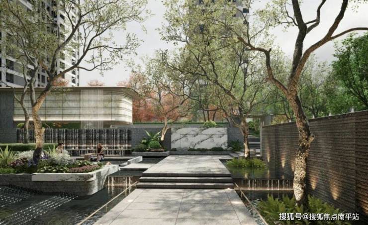 小区园林还单独设计了水景庭院,整体园林的层次感相比桃李九章更为丰富。