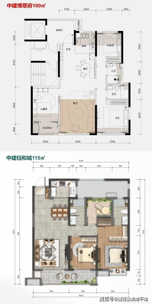 1、中建博萃府100㎡三房与中建钰和城115㎡老规三房比较