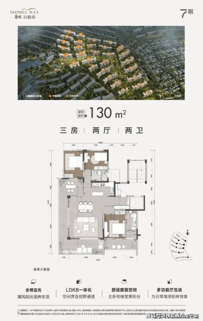 亮点:LDKB一体化设计,270度环幕景观视界,全景落地窗衔接阳台,打造出兼具通透感、互动感娱功能性的理想生活场景;全明追光,空间舒适;主卧包含南向独立卫生间、独立阳台,打造更具私密感的轻奢居住体验