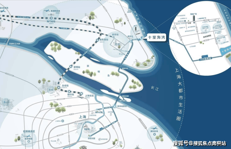 招商碧桂园十里海湾是碧桂园和招商蛇口联手打造的“十里”系标杆文旅项目,位于启东市,与上海隔江相望,直线距离仅约50km,环沪都市圈的核心区
