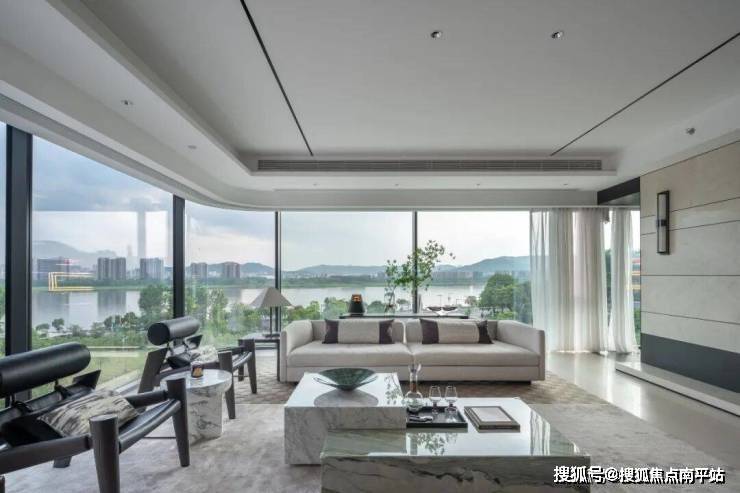 两者互相作用,使 享有江景的户数比例由常规的头排共约45%提升至整个项目的90%套数,从而 打破头排建筑对于景观的资源垄断,实现江景平权 ,让“山水入室”成为社区标配,最大化提升整体居住价值。