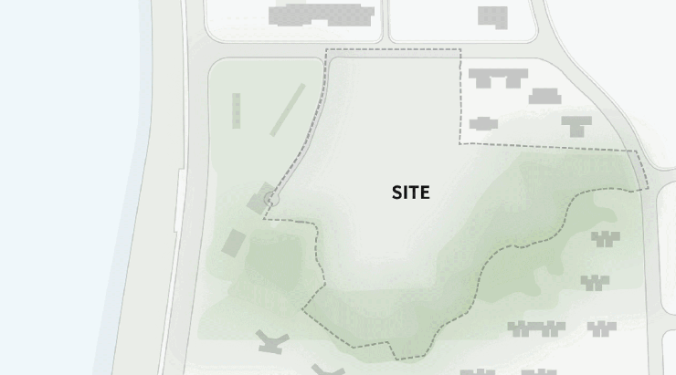我们以地形的竖向高差为资源,延展归家体验,将主入口设在南侧较低的标高,通过阶梯、坡道与景观序列模糊标高差异并刻意拉长归家动线,使归家过程由“直达”的情景突变转为“逐次展开”的情绪铺排。