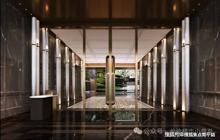 三重臻装入户门楼:地下门厅、首层门厅、私人电梯厅,一进一礼,敬呈归家至高礼序