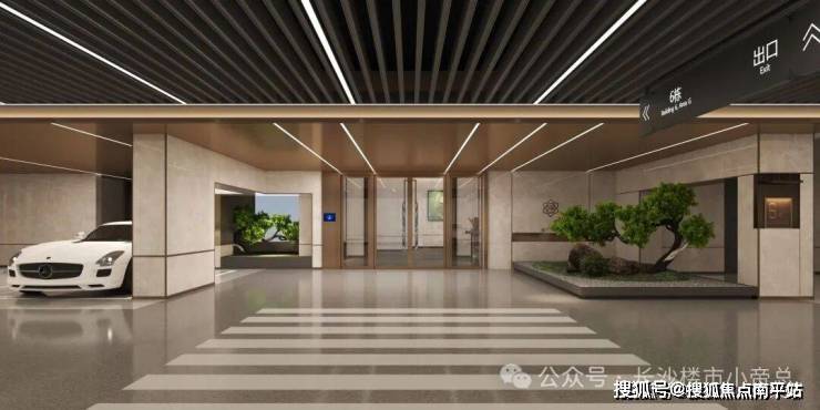 奢装艺术车库:地下车库采用金属格栅+彩石地坪,节点处设绿植,打造诗意归家之路。
