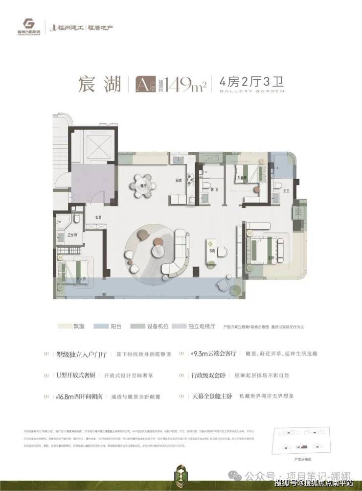 稀贵晋安湖,洋房级新作——首个建面约119-149㎡海派新规奢居,全四房起步设计,224户纯粹高阶圈层。户户约3.05米改善层高,迭新人居高度。户户均超95%得房率,区域最高实用面积,270度观景舱,搭配全面宽屏落地窗,焕新改善居住体验。