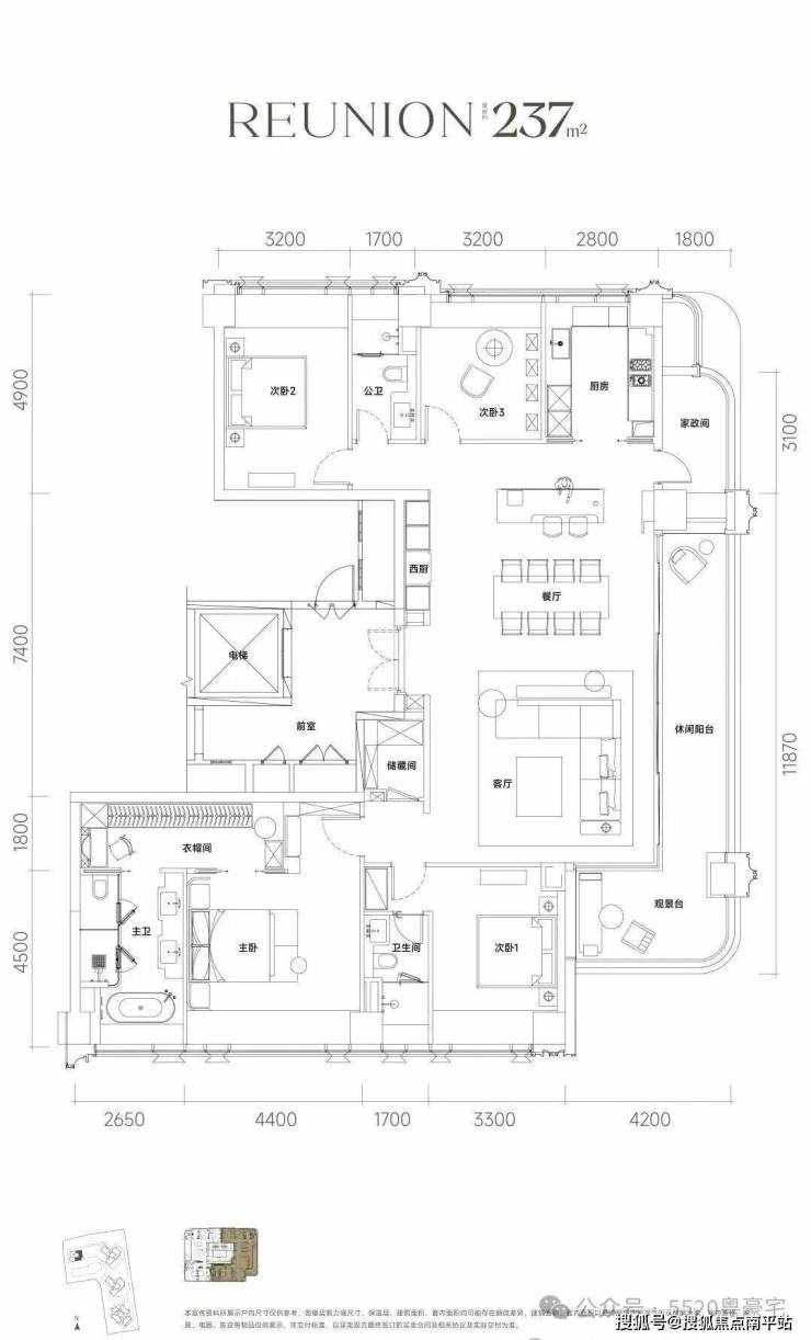 目前项目规划也已曝光:共有4栋住宅和1栋幼儿园, 1、2、3栋的主力户型197-237-246㎡大平层。
