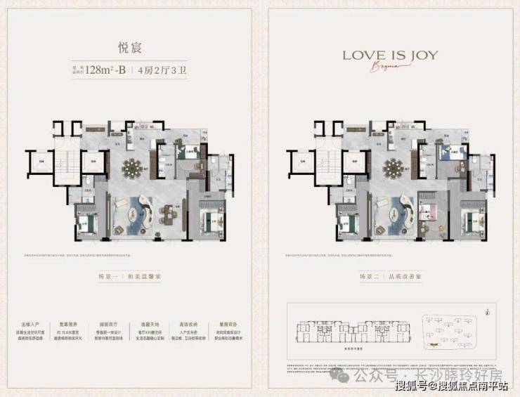 基于对当代菁英家庭改善向往,悦海棠定向研发悦己户型体系,建面约128-172㎡轻奢美学华宅,以X+1可变空间、家庭平权、超容量收纳等创新设计,由外而内,全维擢升精奢质感。