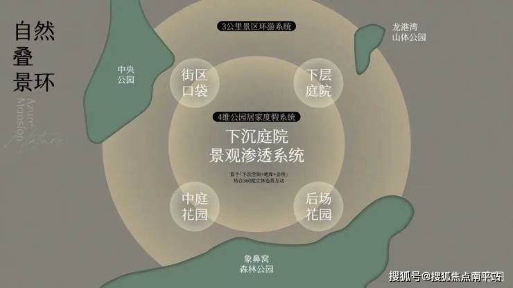 4维公园居家度假系统:项目内部打造『街区口袋+中庭花园+下沉庭院+后场花园』,让公园景色成为日常居家风景。
