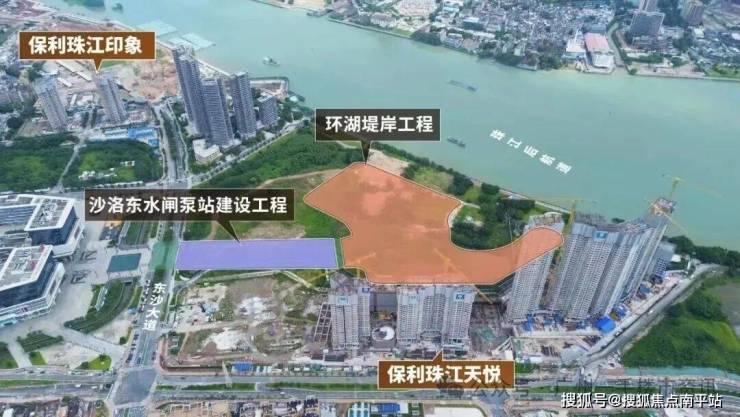 保利珠江天悦项目择址广州荔湾白鹅潭沿江带上的东沙国际商贸港片区,是广州为数不多与珠江边没有道路间隔的江景豪宅社区,项目离珠江边最近的直线距离仅约38米,整个珠江天悦住宅占据着白鹅潭约700米长的私家江岸线。