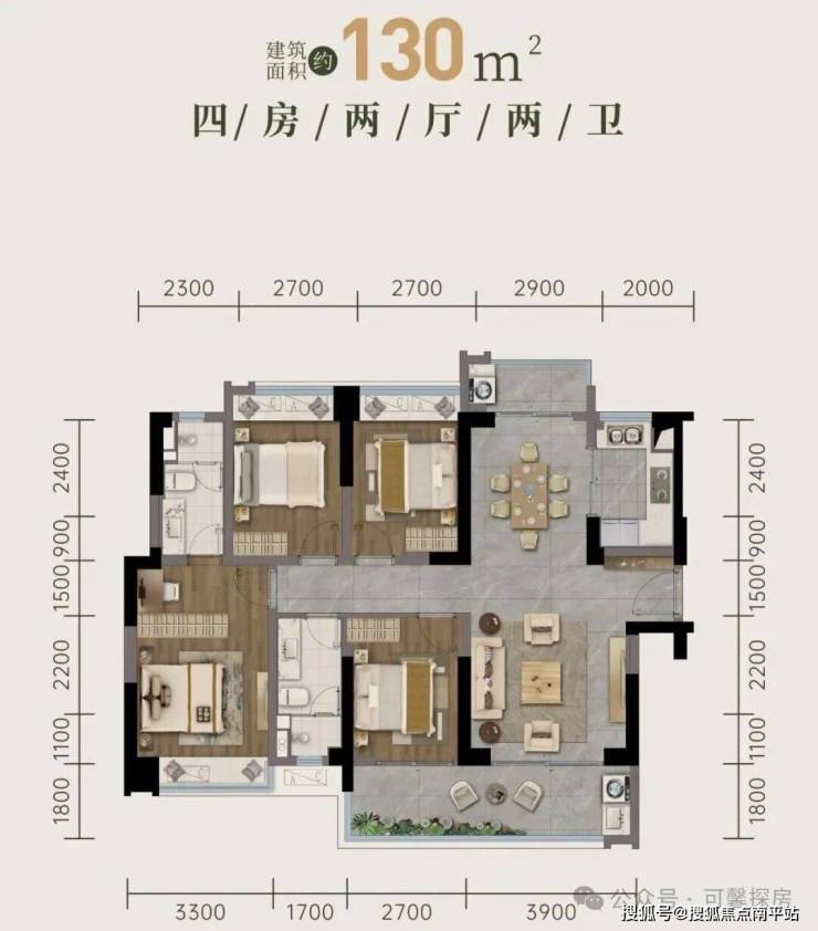 建面约130平 4房2卫👇