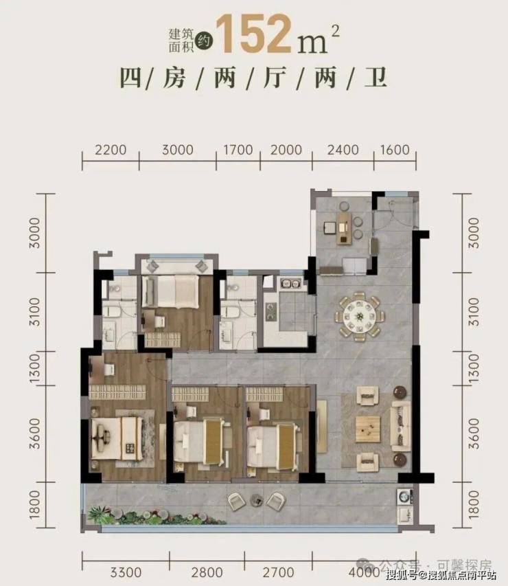建面约152平 4房2卫👇