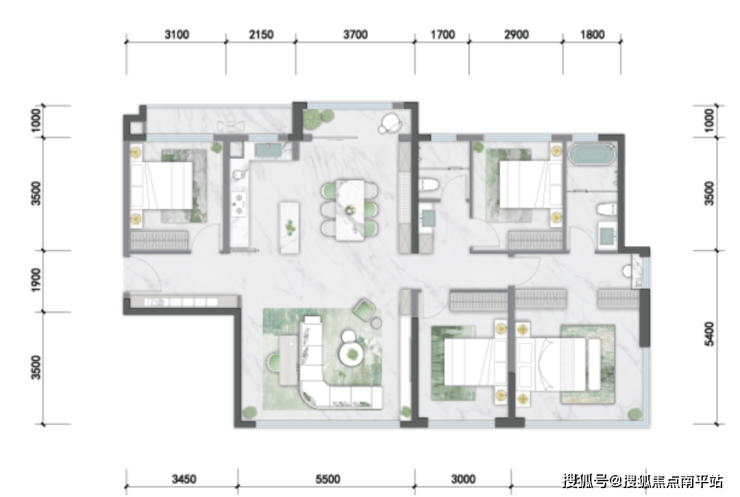 整体规划以中央景观为核,建筑呈现向心式围合布局,通过精细化的空间设计、酒店式的归家体验、超配置的社区会所,让社区成为繁华的过渡、客厅的延伸,打造现代森居生活社区。社区入口的商业“漫集市”,凝聚家门口的精致烟火气;兼具公共交流与私密归属的中央景观,让绿色在园区内自由渗透;首层局部架空的漫空间设计,为业主释放出更多风雨无阻的共享活动空间。户型设计力求保证户户拥有良好采光与通风,通过更敞阔的面宽设计、更精细的户型格局,最大化引入自然光和景观视野。