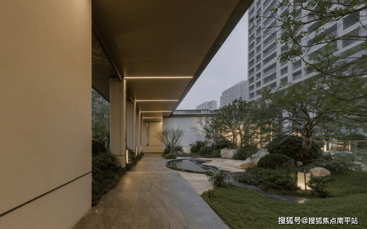 以安缦隐奢理念打造超尺度自然景观,“低干预”保留原生植被,下沉式悬浮庭院与水景相映,串联公园与沿河风光带,构建城市绿芯秘境,园林植被丰富,促进生态平衡,为业主提供健康自然的生活环境。