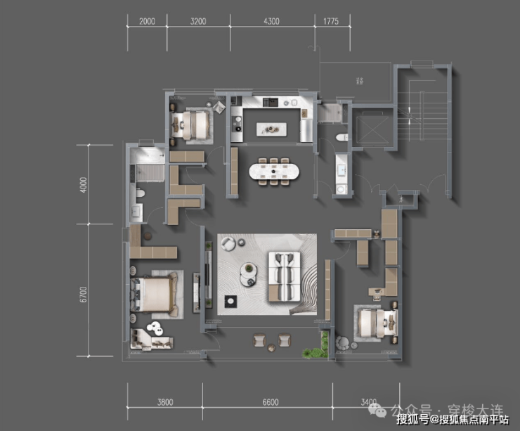 200平四室两厅三卫:小高17层,一梯一户,得房率约120%,270°环幕观海客厅、约35m空中观海花园、十字功能中枢、双主卧套房。