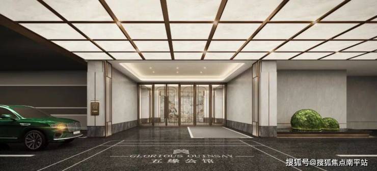 车库也是公馆气质的一面镜子。暗色无机磨石地面搭配满屏高光的大门,迎宾铺装将同肌理的温润奢石做点缀,整体的典雅色调质感从小区的大堂、电梯厅、公区一以贯之。