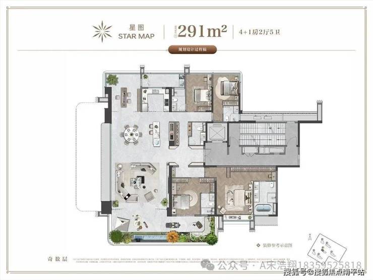 该户型建面约291㎡,实际可用面积达约316㎡,相当于传统住宅约390㎡居住体验。