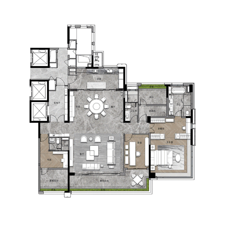 我们再来看看此次加推的268平的大面积户型,作为项目的旗舰,暗藏着哪些巧妙的设计?
